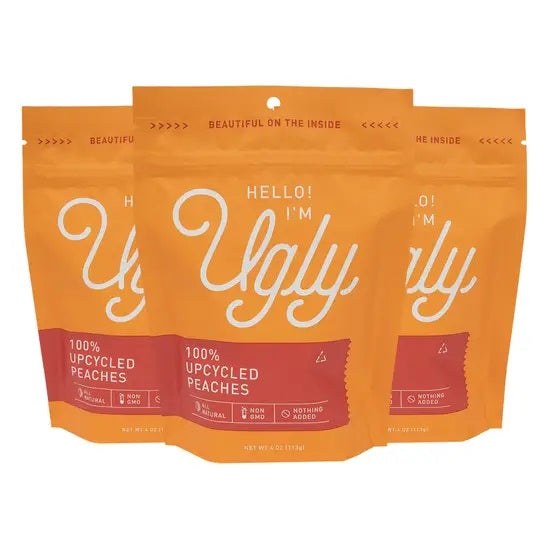 Hello! I'm Ugly. All peaches and nothing else. 100% all-natural with no preservatives and no added sugar, I help out local California farmers reduce waste and add value back to their farms. I'm not just good for you, I'm good for the environment too! Each package prevents over 2lbs of Peaches from becoming waste!
